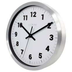 Buy 🎁 Wall Clocks La Crosse Technology 10 In. H Silver Metal Analog Wall Clock With White Dial 👍