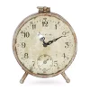 Use this vintage desk clock to keep track of time and add rustic charm to your home. Made from iron, glass, and MDF, this rectangular desk clock finished in an antique silver design. Southern charm mixes with timeless design in this desk clock.