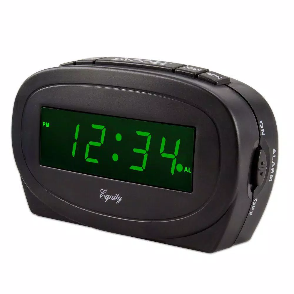 Perfect for bedside alarm offers green digits and beep alarm with snooze. Indicates PM and active alarm. AC powered but requires battery backup.