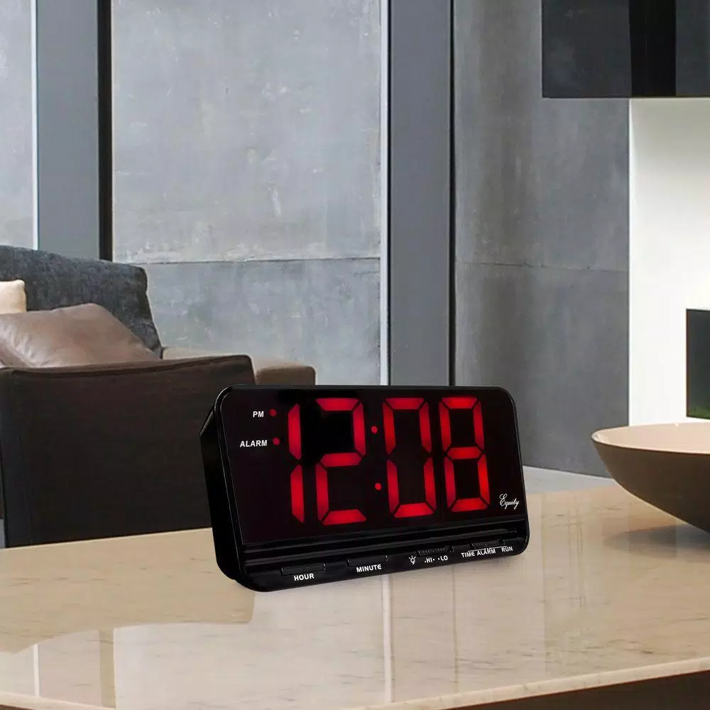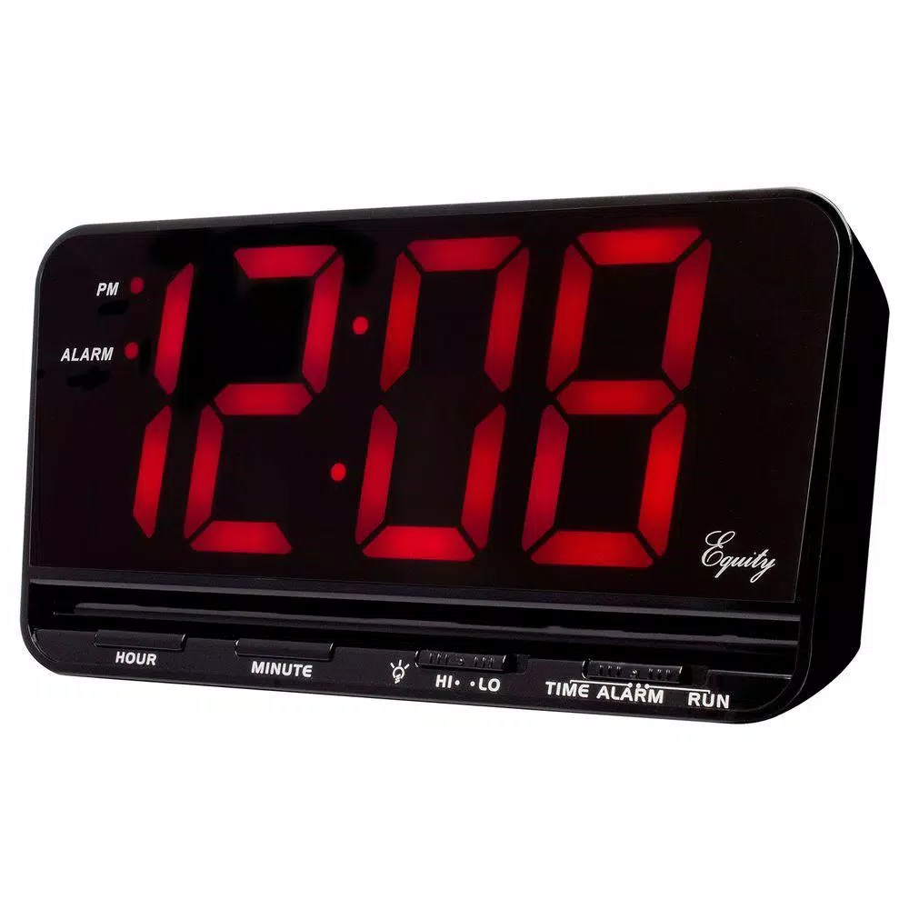 Extremely large clock is viewable from a distance with huge 3 in. digits. Beep alarm and easy to set operation. AC powered but requires battery (one 9-Volt, not included) backup.