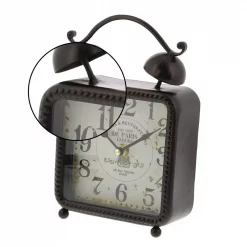 These two classic iron clocks feature a distressed iron frame and faded clock faces. The vintage design and alarm bells adds a classical touch. This pair of clocks will go well with your traditional setting.