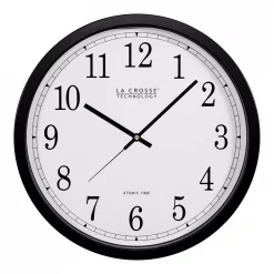 This plastic-framed wall clock measures 14 in. in Dia and looks most at home hanging in an office or business setting. However, this clockβs claim to fame is its precision time-keeping and the fact that it never needs to be set. The clock has a built-in antenna system that receives signals from the WWVB radio transmitter in Fort Collins, Colorado, which is in turn is regulated by the atomic clock. Once you install the battery and choose one of four U. S. time zones, the clock automatically sets to the accurate time in hours, minutes, and seconds, and continues to adjust itself 9 times daily. This low-maintenance clock even automatically adjusts for daylight savings time, so you never need to remember to spring ahead or fall backward. This radio-controlled clock is covered by a 1-year warranty, AA alkaline batteries (not included).