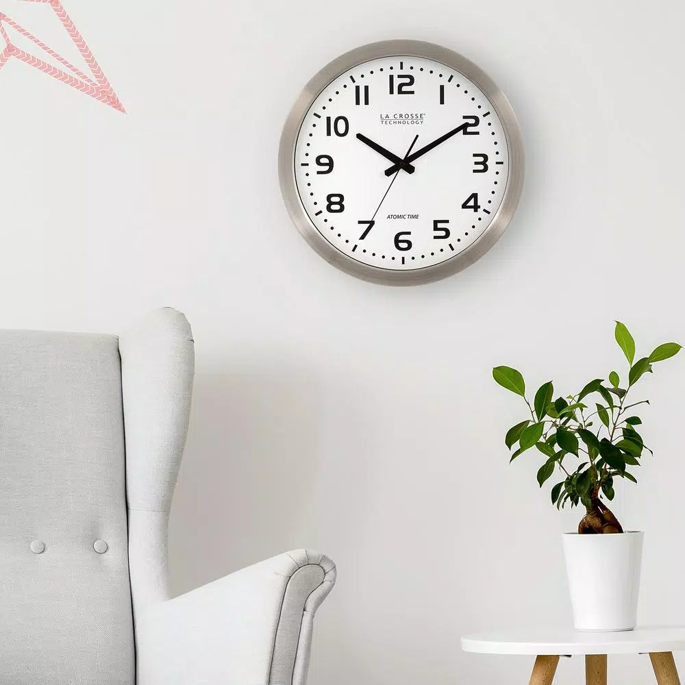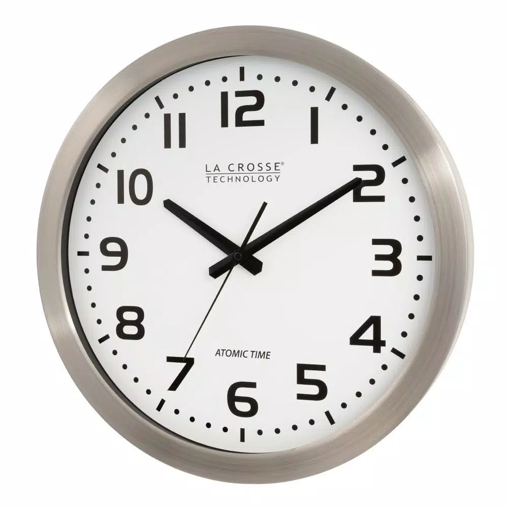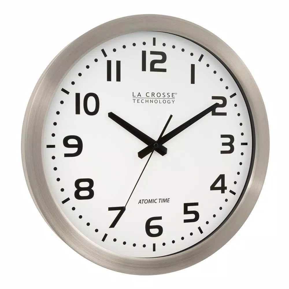 The La Crosse Technology WT-3161WH 16 in. Atomic Analog Wall Clock sets to the U.S. atomic clock to maintain absolute time accuracy. Just insert the battery, set the time zone and hang on the wall. Uses 1 AA battery. Daylight Savings Time On/Off optional.