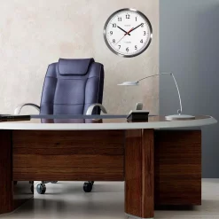 The UltrAtomic wall clock features the most accurate atomic movement on the market. Like a traditional atomic clock, this clock automatically sets itself and updates for Daylight saving time. However, this clock is equipped with 2 antennas that allow it to work in the nosiest, hostile electronic environments such as busy office buildings, hospitals or other institutions. Dual Antennas=Enhanced Reception UltrAtomic clocks feature 2 antennas, whereas traditional atomic clocks only feature 1. The extra antenna increases the WWVB signal reliability and penetration. Extra Battery Compartment -To keep your UltrAtomic clock running longer, the movement features 2 additional battery compartments that allow you to add extra batteries (optional). This keeps the clock running for approximately 4 to 7-years before you need to replace the batteries. Eco-Mode is a battery saving feature that stops the second hand at 12:00 between the hours of 11:00 PM β 5:00 AM.