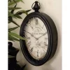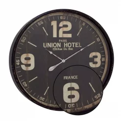 This simply traditional round wall clock features a distressed black frame that makes it ideal for any rustic or vintage setting. The distressed black and white clock face adds a dramatic shabby-chic effect to the sophisticated piece. This easy-to-hang wall clock will bring personality to your wall.
