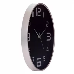 You can keep up with time with this stylish 82 in. wall clock. Perfect for home, office or classroom, the simple and sleek silver frame with black face suits any decor. Large, easy to read numbers allow for greater visibility and a silent mechanism means no aggravating ticking.
