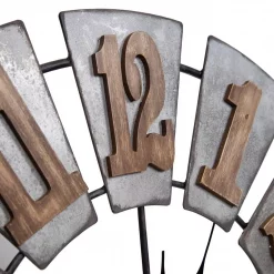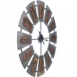 The Gallery Solutions Oversized Metal and Wood Windmill Wall Clock is a timeless focal point with traditional elements and farmhouse flair. Wall clock frame is constructed of metal with a beautifully distressed finish. Each clock number is crafted from solid wood thatβs raised for a dimensional look. This gorgeous timekeeper offers rustic charm and antique style. Oversized wall clock measures 33.75 x 33.75 x 1.5 in., but itβs minimalist design wonβt overwhelm your space. Add a refreshing statement piece with country charm to your space with this Oversized Metal and Wood Windmill Wall Clock.