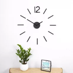 Use your wall space as the board to create your scalable clock. The Blink wall clock by Umbra is a set of black metal indicators and inch 12 inch number that mount to the wall with adhesives. Comes with template to set the scale of the clock on a wall. Clock mechanism mounts to the wall with a screw or nail; operates on one AA battery (not included). designed by Edward Lee and Adrienne Matzo Umbra – original, modern, casual, functional and affordable design for the home.