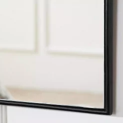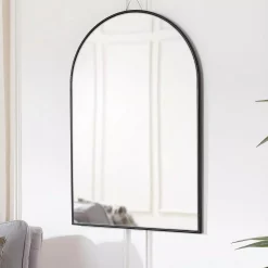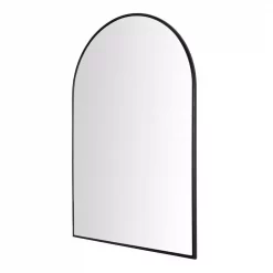 The Medium Arched Black Classic Accent Mirror from Home Decorators Collection features a dome-shaped design that complements a classic style of decor. Its composite frame is black to match the color scheme in any room of the house. With pre-installed D-rings on the back, this elegant mirror can be hung up securely without much hassle. Wipe the reflective surface with a soft, dry cloth to keep it clean.
