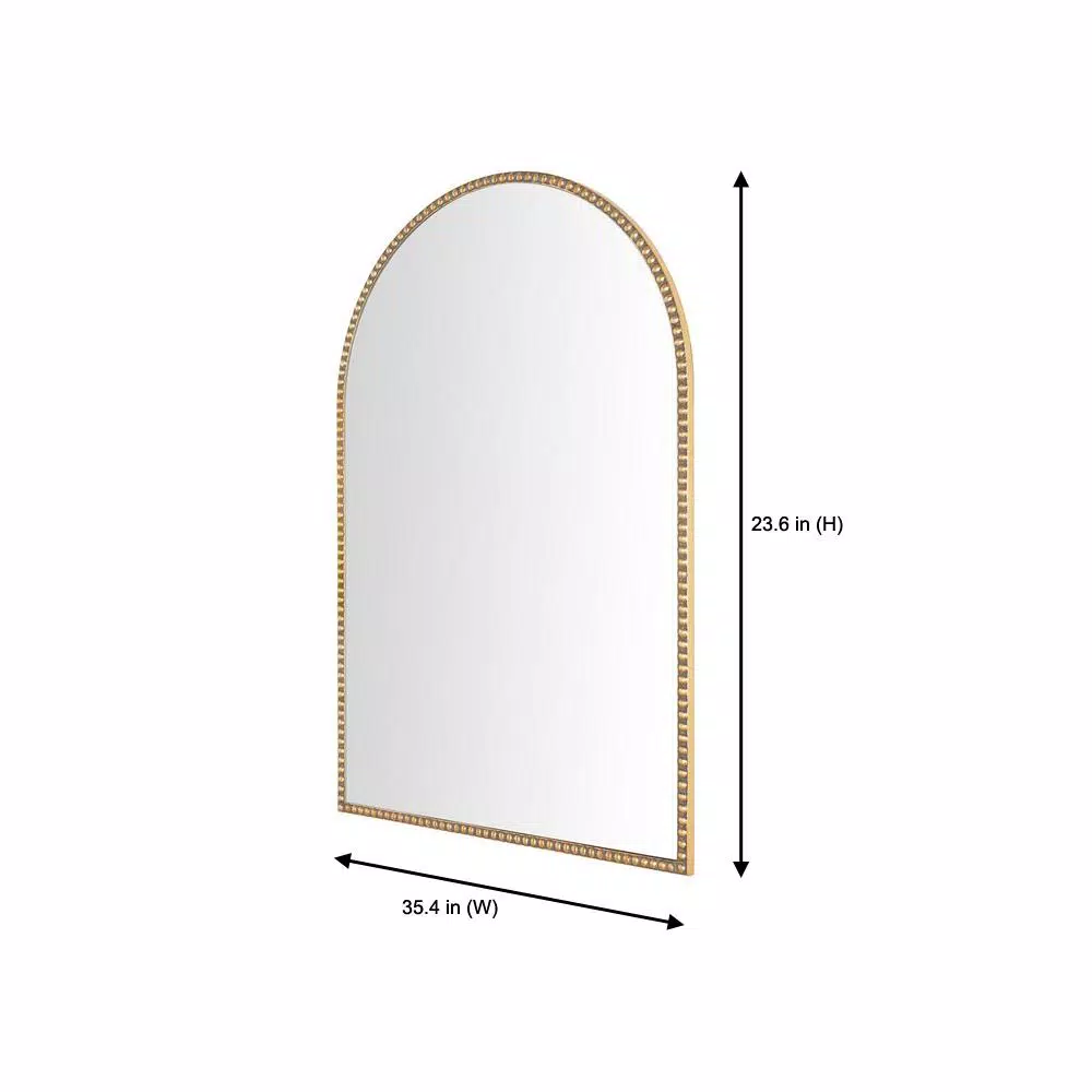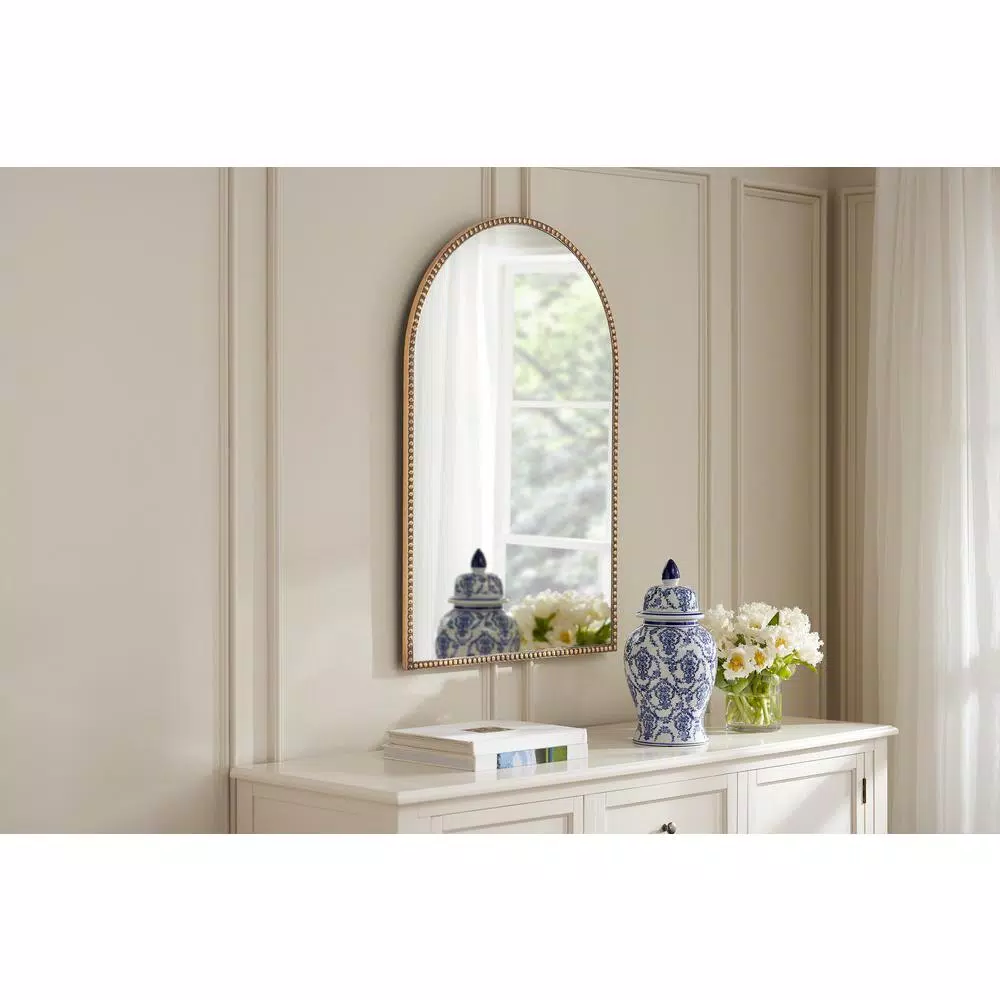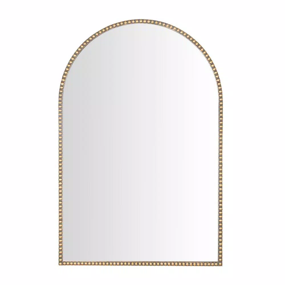 Accentuate your wall space with the Medium Arched Gold Antiqued Classic Accent Mirror from Home Decorators Collection. Its beaded composite frame has an antique gold finish that complements a classic-style decor. With 2-D-rings on the back, this decorative mirror can be hung up with ease. Use a soft cloth with standard glass cleaner to keep this decorative mirror clean and shiny.