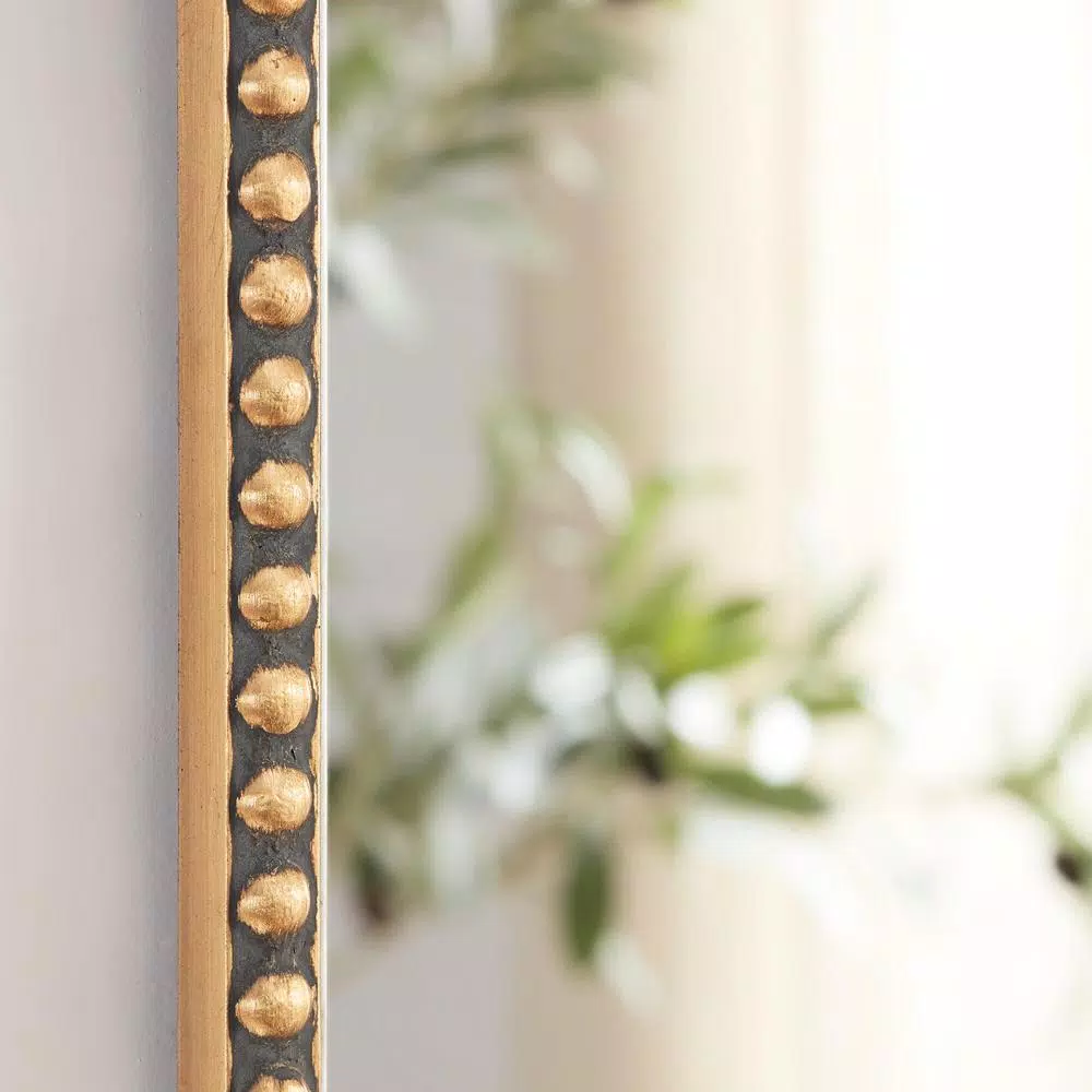 - Rounded arch shape, beaded design, and antique gold finish of the frame complement a classic-style decor