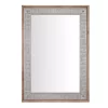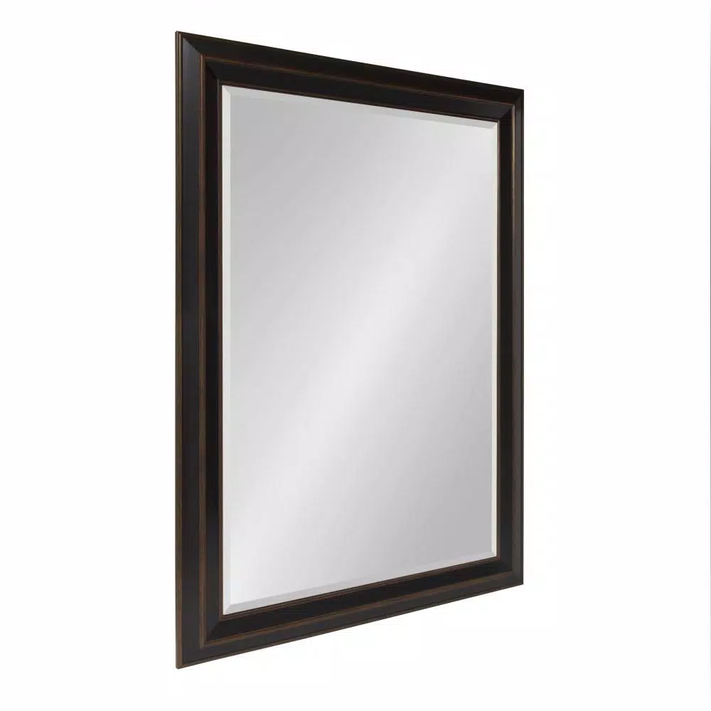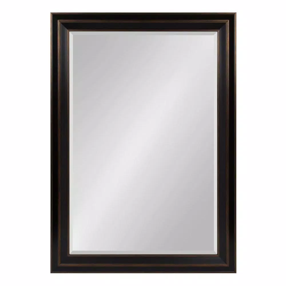 Using a mirror to dress up a part of your home is a simple choice with the Whitley rectangular wall mirror by Kate and Laurel. It is a beautiful addition to any wall and an essential element in your home decor. An easy way to revamp a space, the large 29.5 in. x 41.5 in. rectangle frame has the perfect dimensions to add a stylish statement to a hallway, bedroom or living room. You could even place two on adjacent walls for opening up space in any smaller room. The substantial size makes it a natural selection for your bathroom either as a tasteful piece of wall art or a practical vanity mirror โ use two for a great look over a double sink cabinet! The handsome design creates a contemporary appearance and blends with other styles well, so it is sure to fit perfectly in a kitchen, hallway or dining room too. The frame is made of a sturdy polystyrene material and has a 3 in. wide profile with lovely decorative detail. The beveled mirror surface is a generous 23.5 x 33.5 in., reflecting lots of light and brightening up any space.