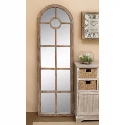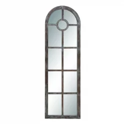 Well made and beautiful, our Hayes Window Mirror features a graceful arched top with panels resembling a window with a circle accent at the top. The distressed brown wood finish complements all home decor styles. Order yours now.