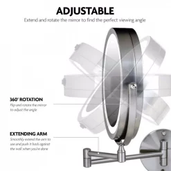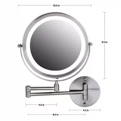 Ovente mirrors are built with a two-sided swivel magnified concave lens that is distortion-free, meaning it does not change the shape of the image. Its Cool, White Tone LED Light allows you to get the closest to natural lighting, giving you a brighter and clearer view of every pore, wrinkle, blemish and hair. These features allow you to view yourself most accurately through its 8.5-in. spinning viewing space, precise 1x7x magnification. Because of the magnifying lens, you must be about 4 inches away from the mirror to get the most accurate results, and its unique internal wiring allows for a safe rotation at any angle. We believe itβs important to reduce your carbon footprint, which is why we equip LED lights in many of our products. It is a popular feature because it saves you money from energy bills while also reducing waste. They do not contain toxins or mercury. Since they last many years and thousands of hours (even when used all day), you no longer need to worry about replacing light bulbs! All of our wall-mountable mirrors have an adjustable extendable arm that pulls forward at 180Β° and lays flat against the wall when not in use. This creates a useful mechanism that is both convenient and keeps one more item off the countertop. This mirror is powered by 4 AAA batteries (not included). Ovente Wall Mount Mirrors can be used as a feature piece, or to help makeover a room by hiding cracks, wall blemishes, holes or other imperfections due to its wall mounting capability.