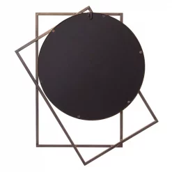 Add a clean modern element to your decor with this Gold Circle and Rectangle Layered Wall Accent Mirror. This modern mirror adds a updated twist to the classic round mirror with the simplicity of geometric forms. Framed in a cut out metal frame finished in a gorgeous gold finish. This frame features rectangular layers overlaying the circle mirror. This playful modern design is a stand out decor piece for your space. It measures 24 in. tall x 21 in. wide and hangs securely to any wall with industrial hangers on the back. Unique enough to add as an accent piece to your midcentury decor, yet large enough to make for a focal point above the mantel. Mirrors provide the illusion of a larger space while also adding bright reflective shine. This mirror is no exception with itβs unique modern design.